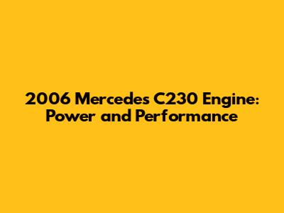 2006 Mercedes C230 Engine: Power And Performance