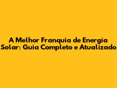 A Melhor Franquia De Energia Solar: Guia Completo E Atualizado