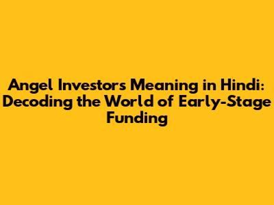 Hey everyone! Ever heard of angel investors and wondered what they actually do, especially if you're looking for the angel investors meaning in Hindi? Well, you're in the right place. Today, we're diving deep into the world of angel investing, unpacking its meaning, how it works, and why it's a crucial part of the startup ecosystem, with a special focus on understanding it all in Hindi. Let's get started, shall we?