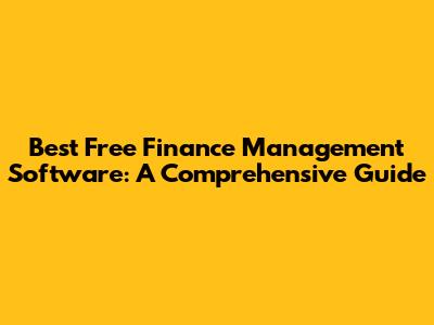Best Free Finance Management Software: A Comprehensive Guide