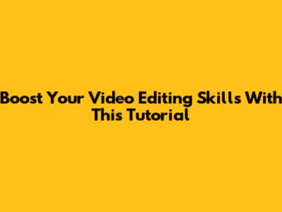 Boost Your Video Editing Skills With This Tutorial