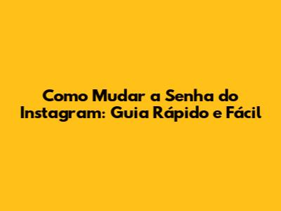Como Mudar A Senha Do Instagram: Guia Rápido E Fácil