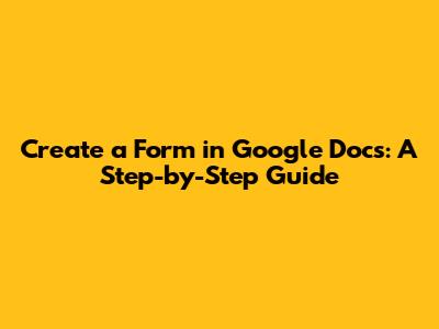 Create A Form In Google Docs: A Step-by-Step Guide