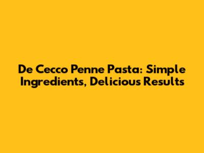De Cecco Penne Pasta: Simple Ingredients, Delicious Results