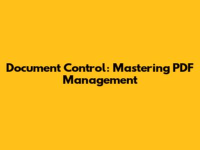 Document Control: Mastering PDF Management