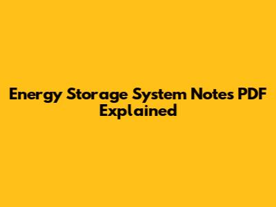 Energy Storage System Notes PDF Explained