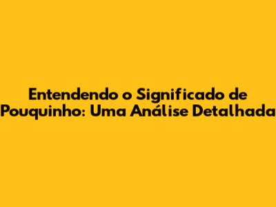 Entendendo O Significado De 'Pouquinho'