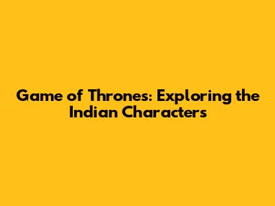 Game Of Thrones: Exploring The Indian Characters