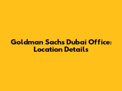 Goldman Sachs Dubai Office: Location Details