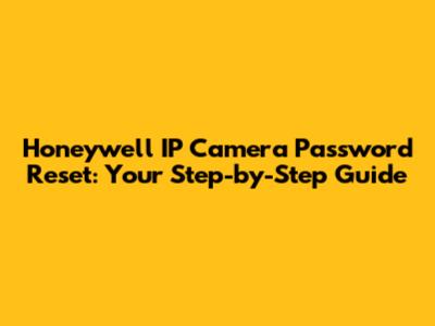 Honeywell IP Camera Password Reset: A Quick Guide