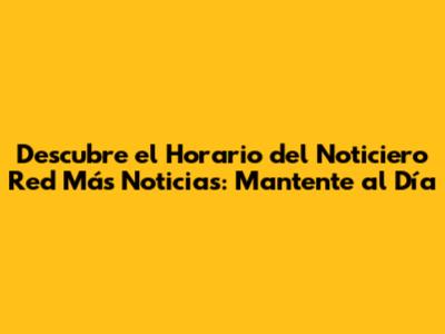Horario Noticiero Red Más Noticias: ¡Infórmate!