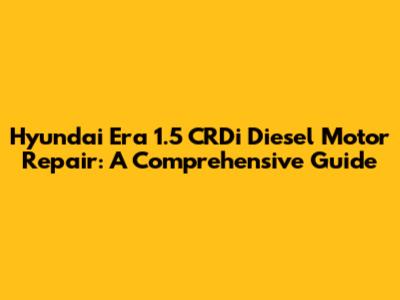 Understanding the Hyundai Era 1.5 CRDi Diesel Engine