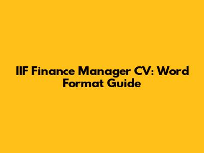 IIF Finance Manager CV: Word Format Guide