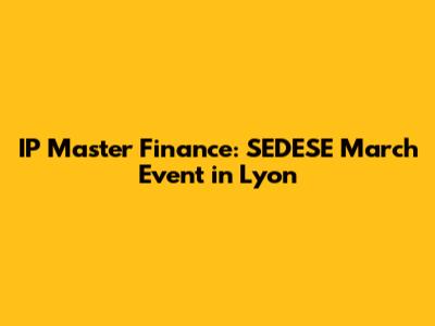 IP Master Finance: SEDESE March Event In Lyon