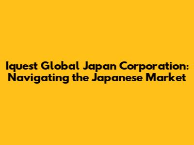 Hey everyone, let's dive into something super interesting – Iquest Global Japan Corporation. This company is a real player in helping businesses navigate the often-complex waters of the Japanese market. We're going to break down what they do, how they do it, and why they might be a great partner if you're looking to expand into Japan. Think of this article as your friendly guide to understanding Iquest Global Japan and the opportunities they unlock.