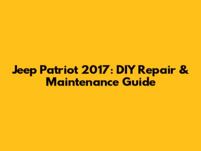 Jeep Patriot 2017: DIY Repair & Maintenance Guide
