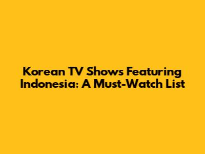 What to Expect in Future Korean TV Shows Featuring Indonesia
