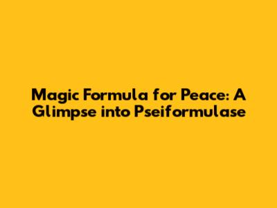 Magic Formula For Peace: A Glimpse Into Pseiformulase