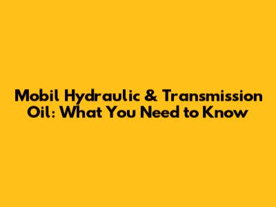 Mobil Hydraulic & Transmission Oil: What You Need To Know