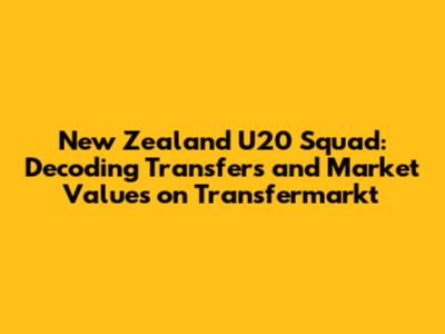 New Zealand U20 Squad: Transfers And Market Values