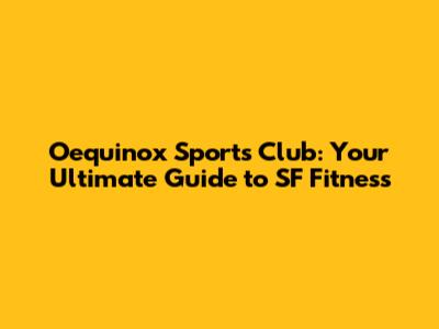 Oequinox Sports Club: Your Ultimate Guide To SF Fitness