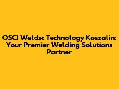 How to Get Started with OSCI Weldsc Technology in Koszalin