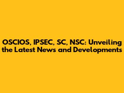OSCIOS, IPSEC, SC, NSC: Latest News And Updates