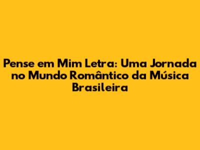 "Pense em Mim" é uma canção que fala sobre saudade, esperança e a persistência do amor. A letra, escrita com maestria, nos leva a refletir sobre a importância de manter viva a chama da paixão, mesmo diante da distância ou das dificuldades. A música, originalmente interpretada pela dupla Leandro & Leonardo, tornou-se um hino romântico, tocando os corações de milhões de pessoas em todo o Brasil e além. Ao analisar a letra, percebemos que ela é um convite à lembrança, uma súplica para que o ser amado não se esqueça do sentimento que os une. A melodia suave e a voz marcante dos cantores completam a experiência, criando uma atmosfera de nostalgia e desejo. A letra é composta por frases simples, mas carregadas de emoção, que retratam a angústia da ausência e a esperança do reencontro. É como se cada palavra fosse uma prece, um pedido para que o amor permaneça presente, mesmo quando os corpos estão separados.
