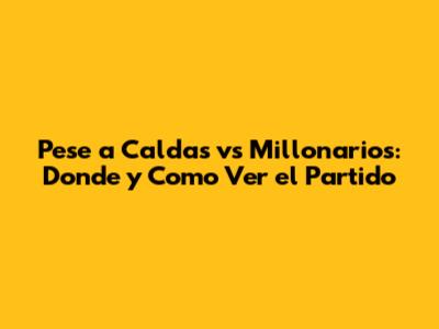 Pese A Caldas Vs Millonarios: Donde Y Como Ver El Partido