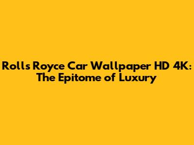 Rolls Royce Car Wallpaper HD 4K: The Epitome Of Luxury