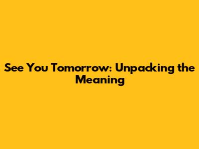 See You Tomorrow: What It Really Means