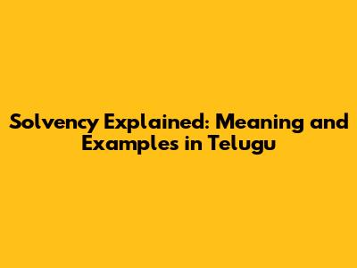 Solvency Explained: Meaning And Examples In Telugu