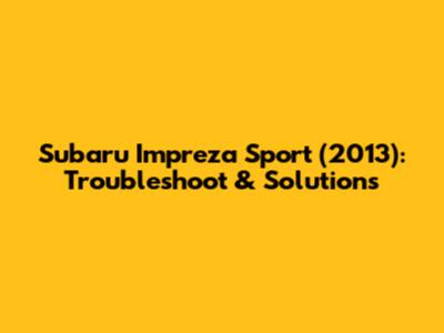 Subaru Impreza Sport (2013): Troubleshoot & Solutions