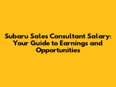 Subaru Sales Consultant Salary: What You Need To Know