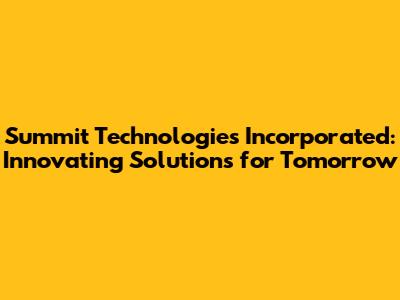 Summit Technologies: Innovating Solutions For Tomorrow