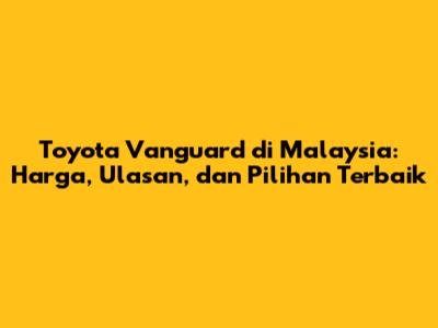 Toyota Vanguard Di Malaysia: Harga, Ulasan, Dan Pilihan Terbaik