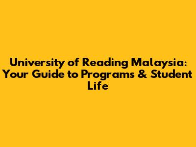 University Of Reading Malaysia: Programs & Student Life