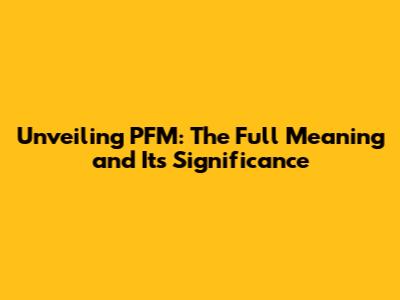 Unveiling PFM: The Full Meaning And Its Significance