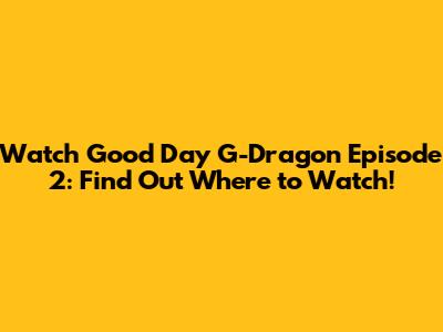 Watch Good Day G-Dragon Ep 2: Find Out Where To Watch!